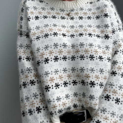 A soft neutral base with beautifully stitched floral‑sleeves, this sweater brings a delicate splash of seasonal charm to cozy styling.